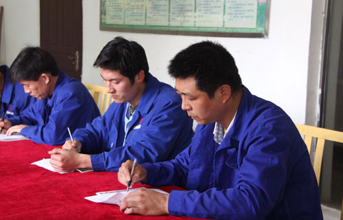 為加大員工培訓(xùn)力度,提升員工綜合素質(zhì),今年以來,大地公司創(chuàng)新培訓(xùn)形式,完善培訓(xùn)機(jī)制,本著“立足崗位,切合實(shí)際,因崗施教,注重實(shí)效”的原則,把培訓(xùn)任務(wù)分解到各車間,各崗位。建立培訓(xùn)、考核、晉級(jí)一體化的激勵(lì)機(jī)制,激發(fā)團(tuán)隊(duì)活力,形成人人學(xué)習(xí),個(gè)個(gè)上進(jìn)的良好氛圍。 各車間結(jié)合工作實(shí)際,嚴(yán)格遵循公司各階段培訓(xùn)活動(dòng)規(guī)定的步驟和時(shí)間安排,列出學(xué)習(xí)計(jì)劃,明確學(xué)習(xí)任務(wù)和時(shí)間,針對(duì)不同崗位不同員工的需求,采取集中學(xué)習(xí)、個(gè)人自學(xué)、研討交流等方式,重點(diǎn)學(xué)習(xí)安全生產(chǎn)規(guī)章制度,崗位操作規(guī)程,業(yè)務(wù)流程等,通過理論知識(shí)測評(píng),使職工找準(zhǔn)自身存在的問題和薄弱環(huán)節(jié),以便及時(shí)彌補(bǔ)和改進(jìn)。確保培訓(xùn)取得實(shí)實(shí)在在的效果。 通過培訓(xùn),滿足了廣大員工對(duì)知識(shí)、技能的需求,激發(fā)了員工的工作熱情和團(tuán)隊(duì)活力,公司上下形成了學(xué)技術(shù)、比技能、爭先進(jìn)的良好環(huán)境。 燒成車間正在對(duì)班組進(jìn)行理論知識(shí)測試