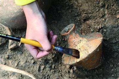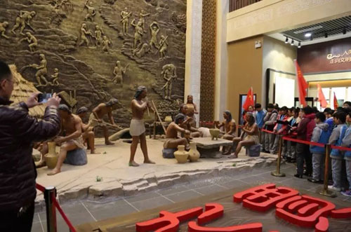 氣勢磅礴的賈湖九千年 在賈湖文化園內,一套泥塑活靈活現地展示了古人的釀酒技藝。