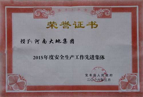 首頁 >> 走進大地 >>資質榮譽 >> 安全生產工作先進集體